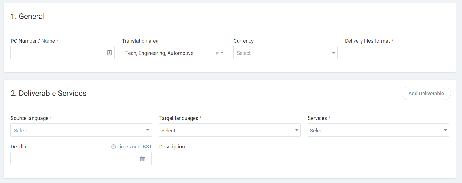 | Add deliverable | Press this button to add another section for Deliverable Services. This might happen if you have different instructions, for different languages | |