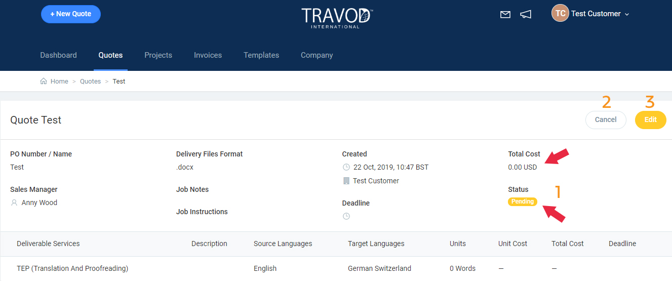 You can still cancel (2) or edit (3) the quote, in case you have missed some details.