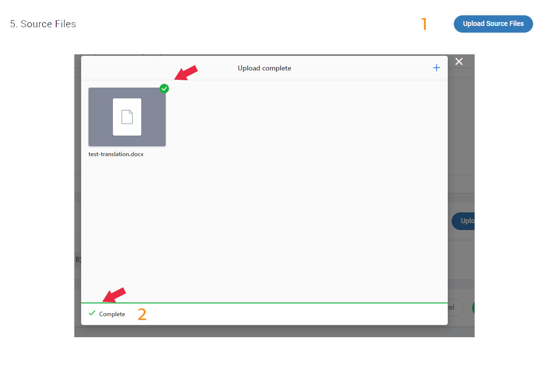 Press “Upload Source Files” and a new dialog window will open. You can either drag-and-drop your file on the dialog window or press “Upload”. You can drag over and upload multiple files at once.